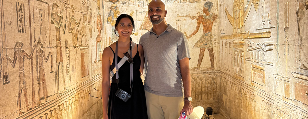 Luxor has been named the world’s biggest open-air museum, and it’s worth spending a majority of your trip there. A top highlight for us was the Valley of the Kings: This place looks like a boring mountain gorge on the outside, but walking through the valley you’ll find 63 tombs dating back to 1500 BC - all underground. The deepest one goes 400 feet down! The artwork and beauty of the tombs are really incredible, with tomb scenes displaying what the buried enjoyed doing in their life. There are scenes of people hunting, doing sports, spectating sports, playing music, dancing, even watching naked girls dancing 😅.